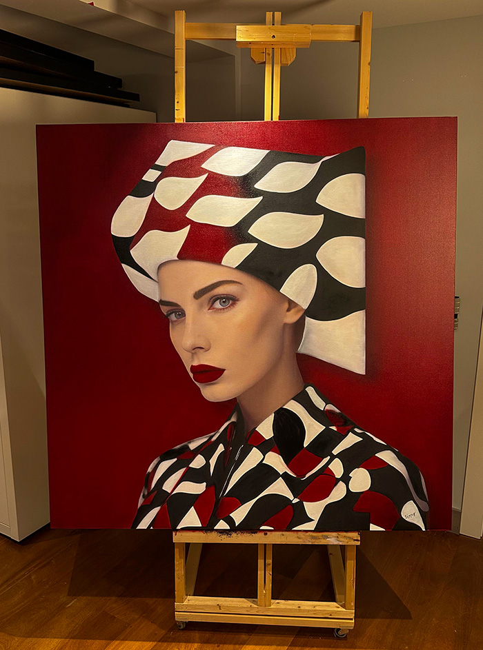 “Cinders and Queens” measuring 150×150 cm, Oil on Canvas.