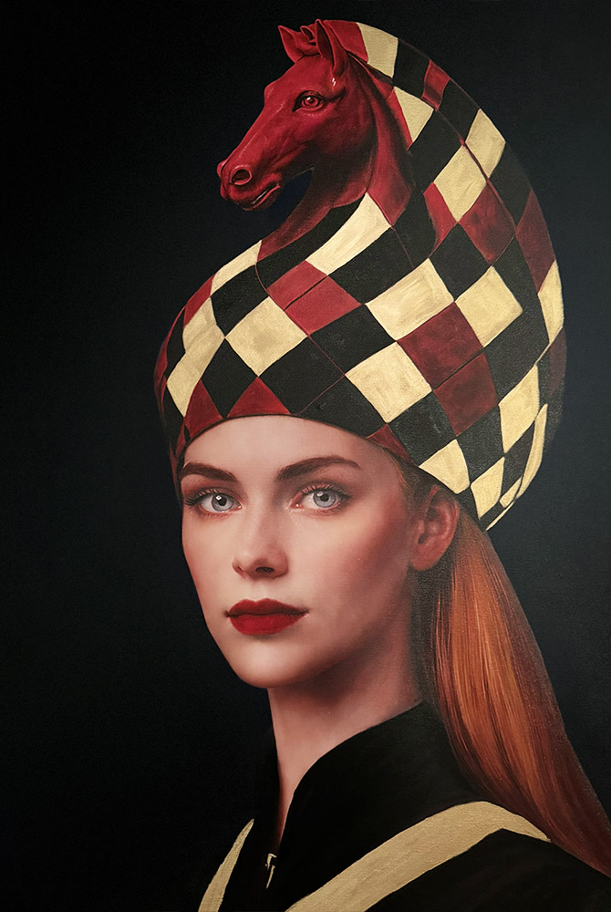 Part of the artist’s 64 Series, inspired by the chessboard’s sixty-four squares, the work examines strategy, hierarchy, and inner discipline the silent forces that shape decisions and destinies.
